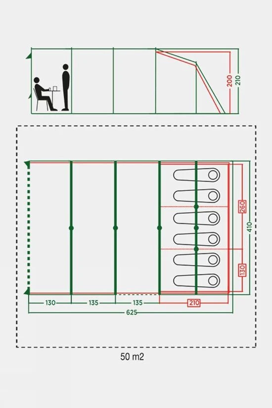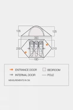 Multiple entrances offer easier entry and exit in inclement conditions. The generous living area is bright and airy and provides plenty of space for dining together or storing camping equipment and bags, while the extra-large porch provides the perfect place to relax, keeping you protected from the sun and rain. The tent’s outer fabric is fire retardant and for extra security, the zipper stoppers on the tent doors ensure that zips are always within easy reach in the event of an emergency, even for children.