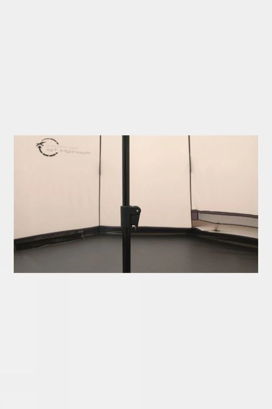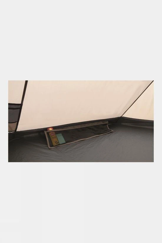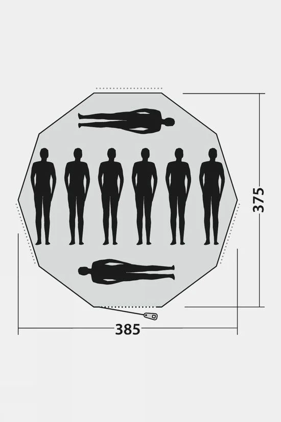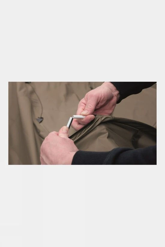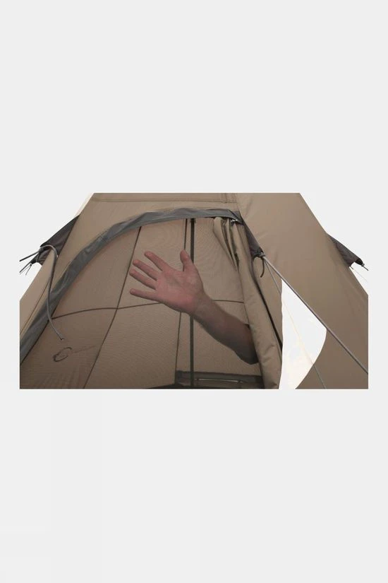 Easy access is guaranteed through the fold flat entrance with double slider zippers on the door for flexible opening and a full mesh door behind. Mesh vent under the apex hood, with a plastic ring to hold its shape, and low covered vents ensure ample ventilation and easily adjustable fresh airflow.