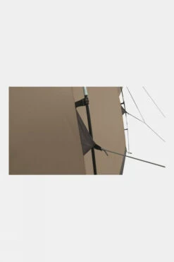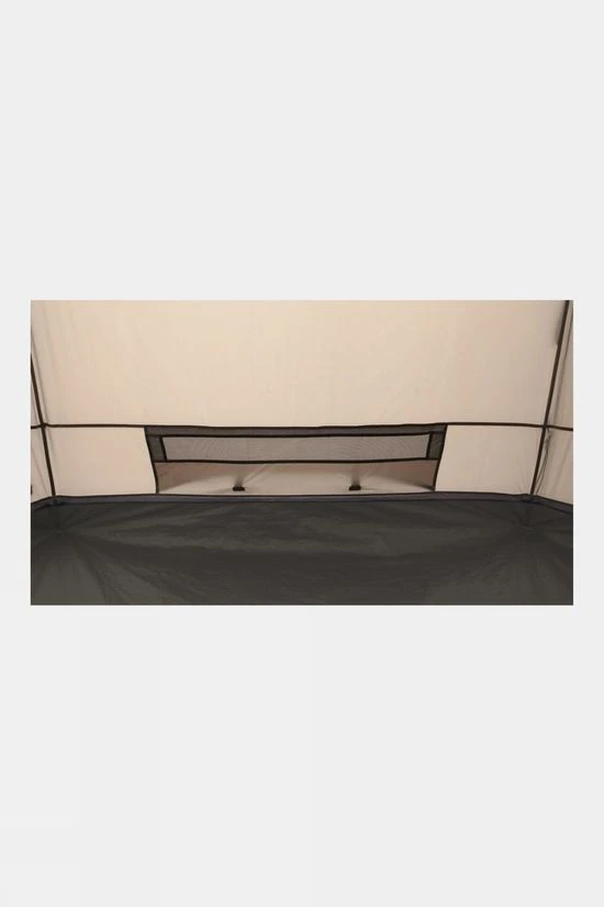 PVC windows deliver internal light, with toggle-up curtains for privacy, whilst easy access is guaranteed through the wide, fold flat entrance with double slider zippers on the door for flexible opening. Large mesh panels under the flysheet cap, a mesh window in the door, with a toggle-up curtain, and covered rear vent ensure ample ventilation and easily adjustable fresh airflow.