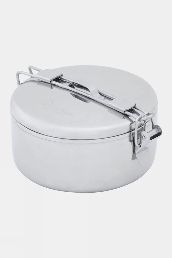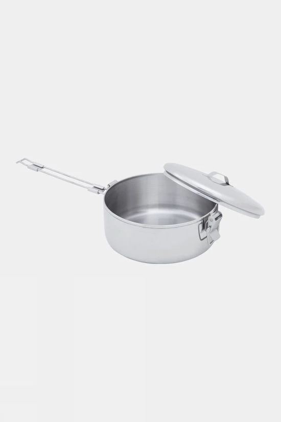 A high-grade stainless steel pot with a hinged handle that flips over the fitted lid to lock it in place. MSR has a great line of stainless steel pots that stand up to heavy use and offer a high quality, durable option in cookware. These Stowaway pots are perfect for scouts and emerging campers, as well as budget-minded travellers.
