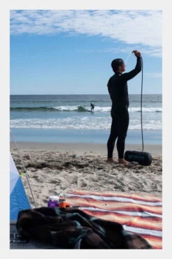 You can quickly and easily pressurize the 2.9-gallon tank with a foot pump, and with occasional pumps you can keep it fully pressurized for 5-7 minutes of strong, continuous spray. The tank cannot be over-inflated. Set the black tank in the sun to warm up gradually, or fill it directly with hot water for a warm shower. Refill Helio anywhere, even without a hose. The 7-foot neoprene hose is long enough to hold it overhead for a shower, or to reach all angles of dirty gear, muddy paws, or salty wetsuits.