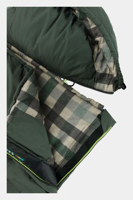 Snuggle up together with the Outwell Camper Lux Double sleeping bag. With extra filling to keep you toasty from late spring to early autumn, this is a great choice for couples who love to camp. The super soft, breathable material and in-built pillows offer cosy comfort, while the zip-on hoods keep chills at bay on cooler nights. Contrast lining means it looks great too!