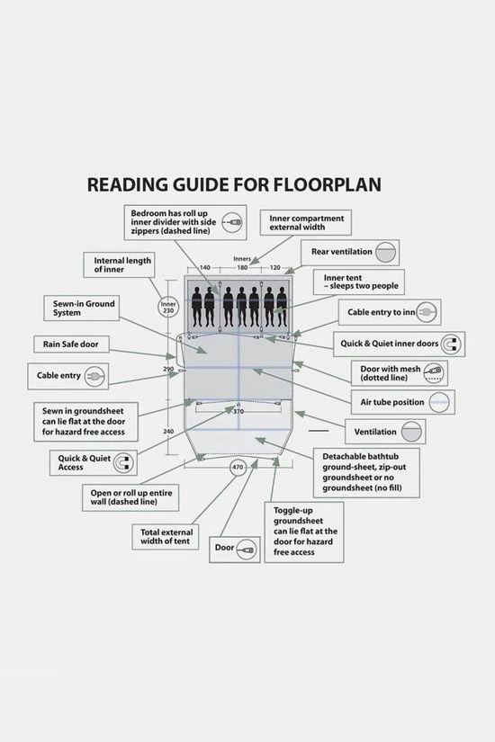 - Groundsheet:Â 100% polyethylene Double-coated waterproofÂ