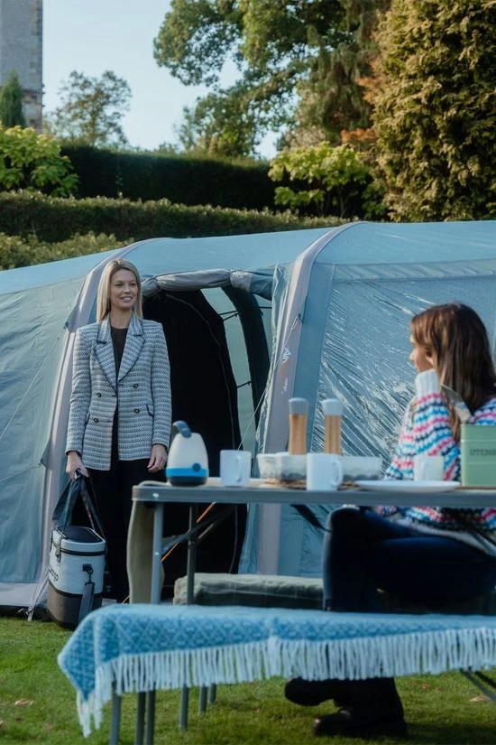The Castlewood Air 800XL, 8-man inflatable AirBeam tent has a mirrored or vis-a-vis tent layout. The separate bedroom pods each sleep up to 4 people and provide greater privacy over a standard tent design. The Castlewood is designed specifically for campers who prefer more private sleeping areas, ideal for two families or couples to have separate sleeping areas with a generous living area in the middle. A groundsheet protector is included which will protect and extend the life of your groundsheet and tent. The generous living space incorporates large Diamond Clear windows allowing light to pour into the living areas during the day with the ability to cover with the roll-away toggled curtains at night. Vango’s AirBeam technology allows you to pitch your tent in a matter of minutes. The Sentinel Fabric keeps pack size and weight low, while ensuring Vango quality and durability. The fully sewn-in groundsheet keeps out draughts and bugs and ventilation can be managed using the mesh doors and AirZone panels. The optional side awning also creates a functional porch that’s great for storing extra kit.