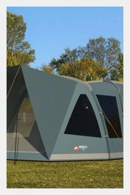 The Mokala 450 is a versatile 4-man tent ideal for spontaneous adventures or longer breaks. A key feature of the Mokala is the multi-use front door that offers flexibility and added ventilation; king poles allow the front door to be made into a canopy to provide shelter from all weathers or roll it back fully to enjoy an open space. It also benefits from a rear door that offers flexibility and added ventilation, which leads to dedicated rear storage space, perfect for hiding away all your kit. Generous stand-up height throughout gives a spacious feel, while King sized bedrooms with Nightfall fabric ensure you sleep comfortably through the night. The Mokala is the perfect tent to enjoy the outdoors. Includes king poles for the front door.