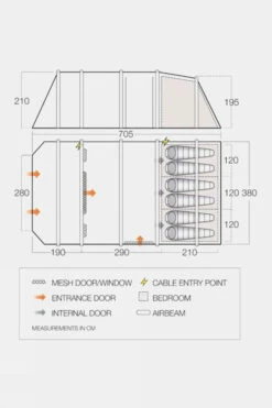 Great head height with three identical poles which aid pitching and added stability through Vango’s innovative TBS II system make this tent a favourite for those looking to spend their days doing activities, pitch quickly and enjoy their time on camp.